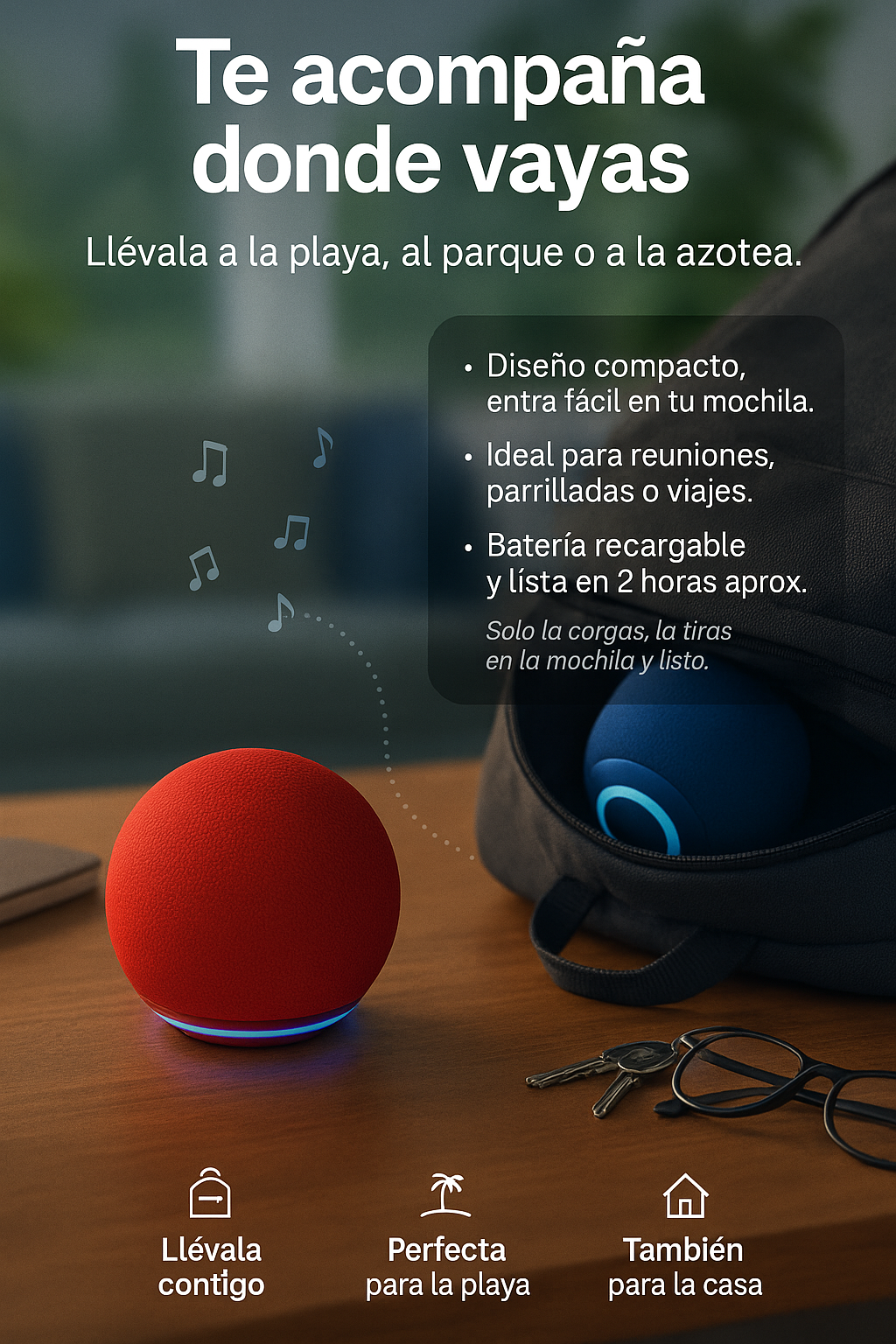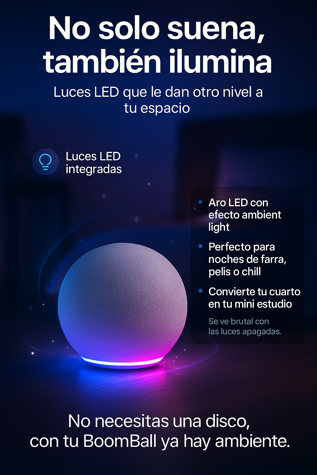 No es un parlante cuadrado cualquiera. Su forma esférica y sus colores sólidos hacen que se vea moderno y decorativo. Lo puedes colocar en tu escritorio gamer, repisa de la sala o mesa de noche y siempre se verá como parte del ambiente. Mantener un estilo coherente en el espacio influye en cómo te sientes y en la motivación para estudiar o trabajar.