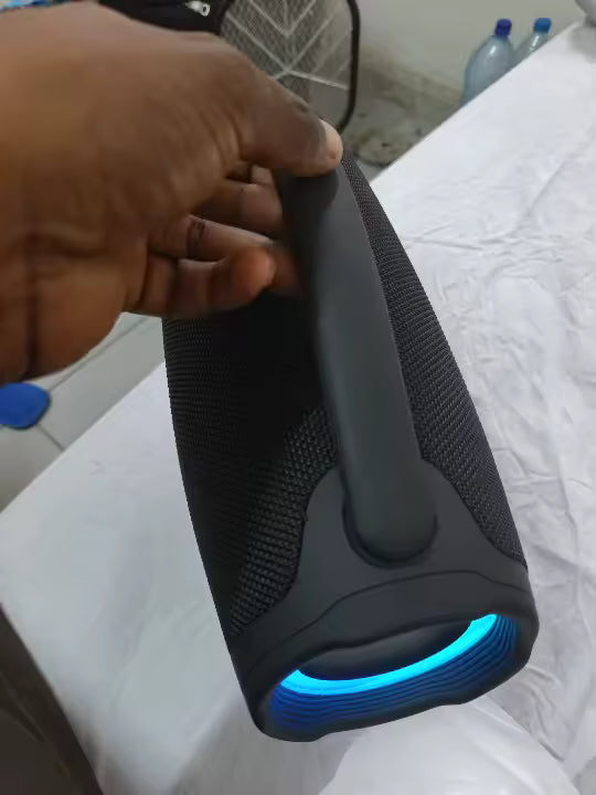 Es un parlante Bluetooth portátil de alta potencia. Se conecta de forma inalámbrica a tu celular, tablet o laptop y reproduce tu música con graves profundos y volumen suficiente para llenar salas, terrazas o espacios abiertos. Su batería interna permite usarla durante horas sin necesidad de enchufarla.