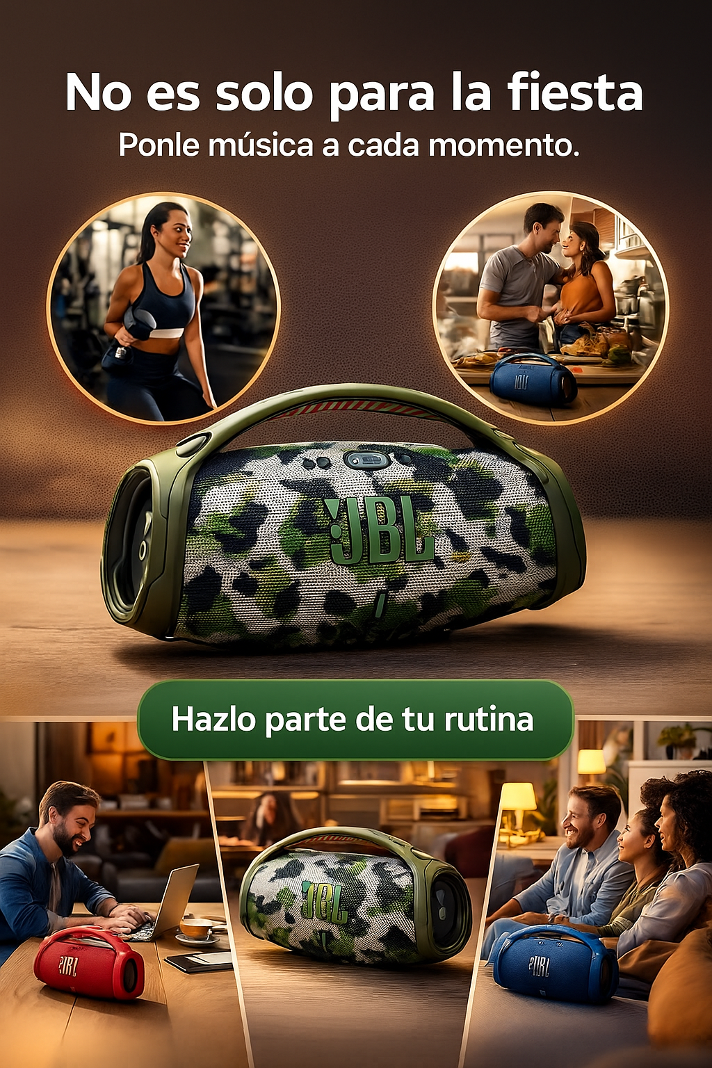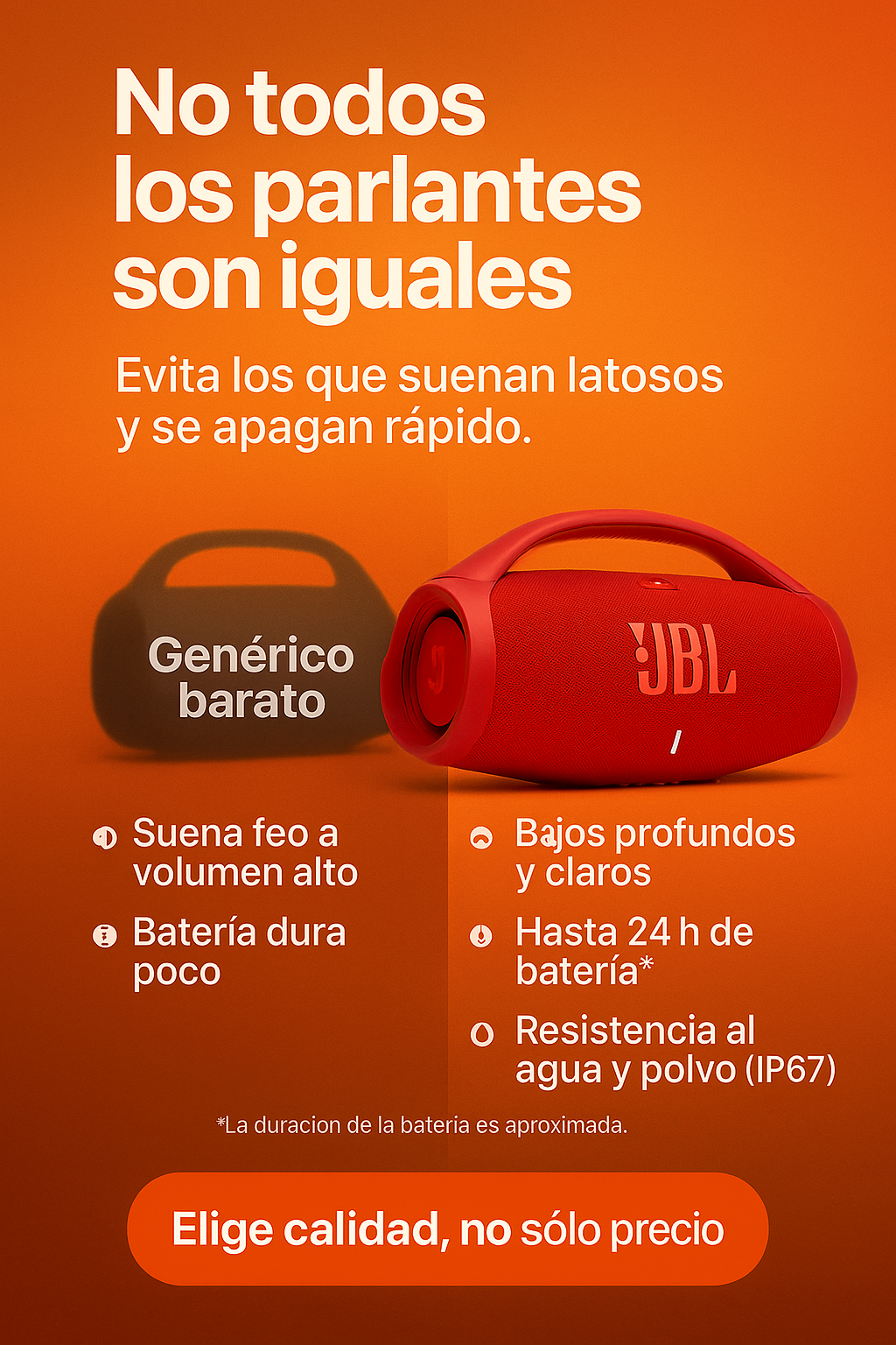 Estructura robusta, sonido JBL y calidad pensada para uso diario dentro y fuera de casa