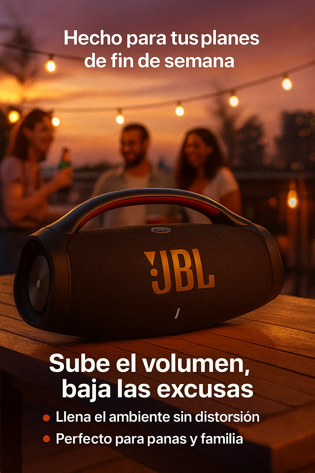 No es solo “más volumen”, es sonido que realmente ocupa el espacio. La bocina estilo Boombox 3 combina graves potentes y medios claros para que la música se sienta en el cuerpo y no solo de fondo. Está pensada para quienes quieren que su reunión gire alrededor del audio, ya sea en sala, terraza o patio.