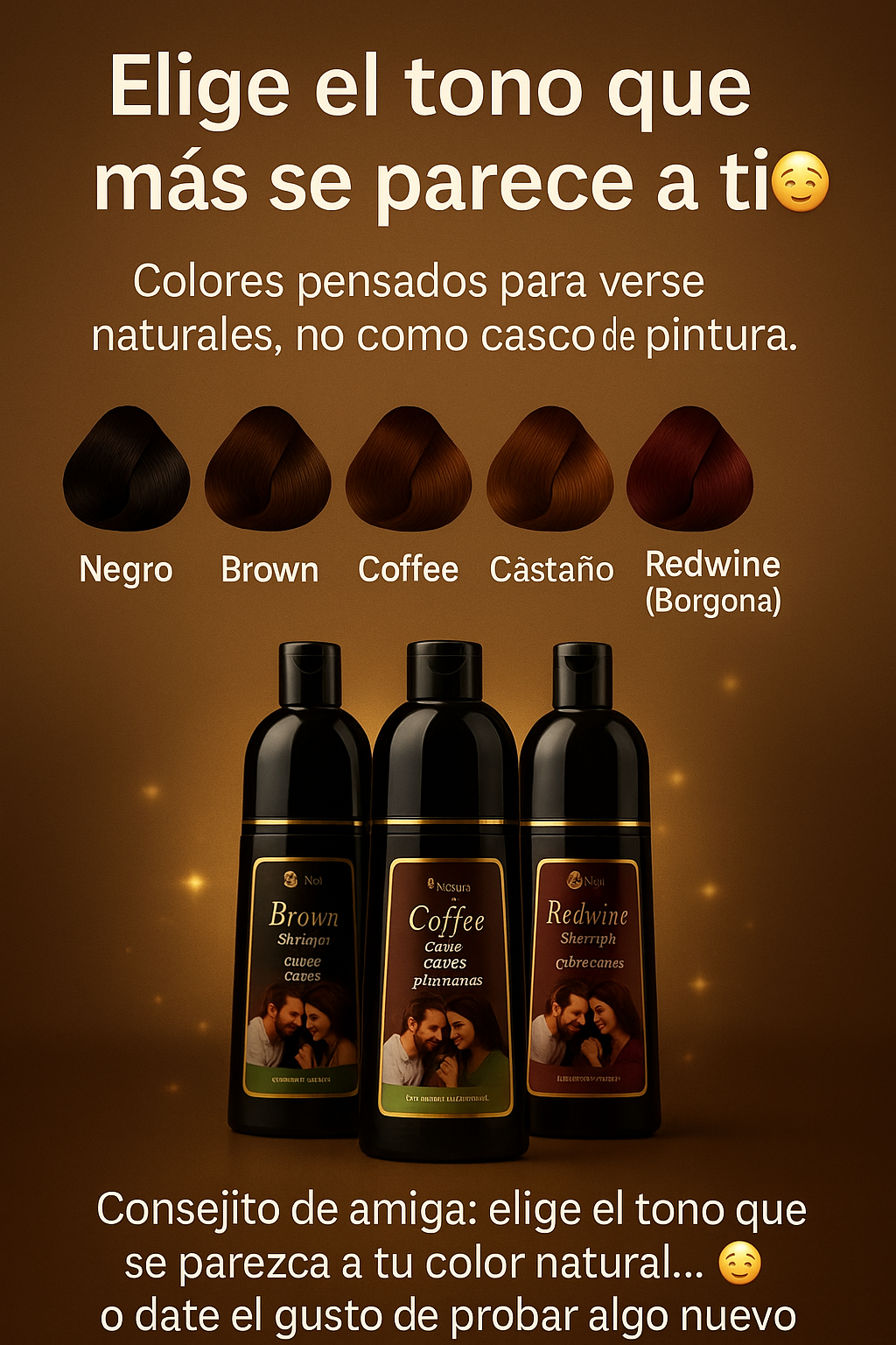 A diferencia de muchos tintes clásicos que incluyen amoníaco, este shampoo color está formulado para ayudar a disimular las canas sin depender de ese componente. Es una opción ideal para quienes quieren cambiar su look y al mismo tiempo buscan ser más cuidadosos con la fibra capilar y el cuero cabelludo.