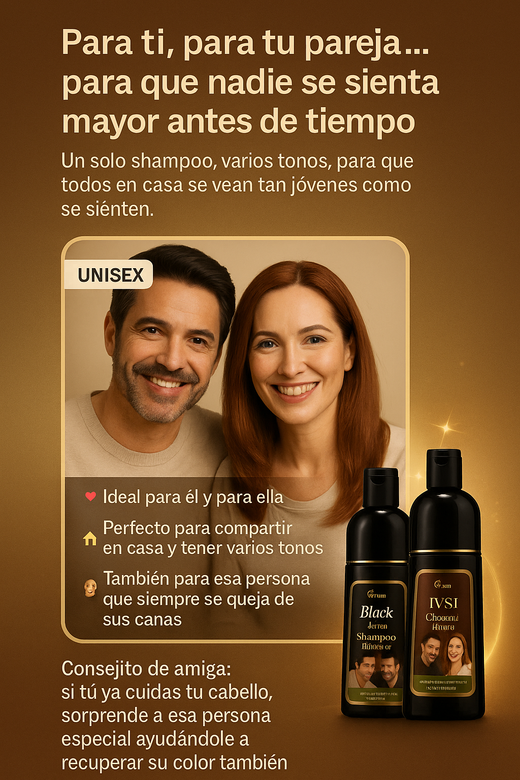 Los tonos están pensados para verse naturales tanto en hombres como en mujeres. Eso hace que sea perfecto para compartir en pareja: cada uno elige el tono que mejor le queda y ambos se olvidan de las canas sin comprar productos distintos.